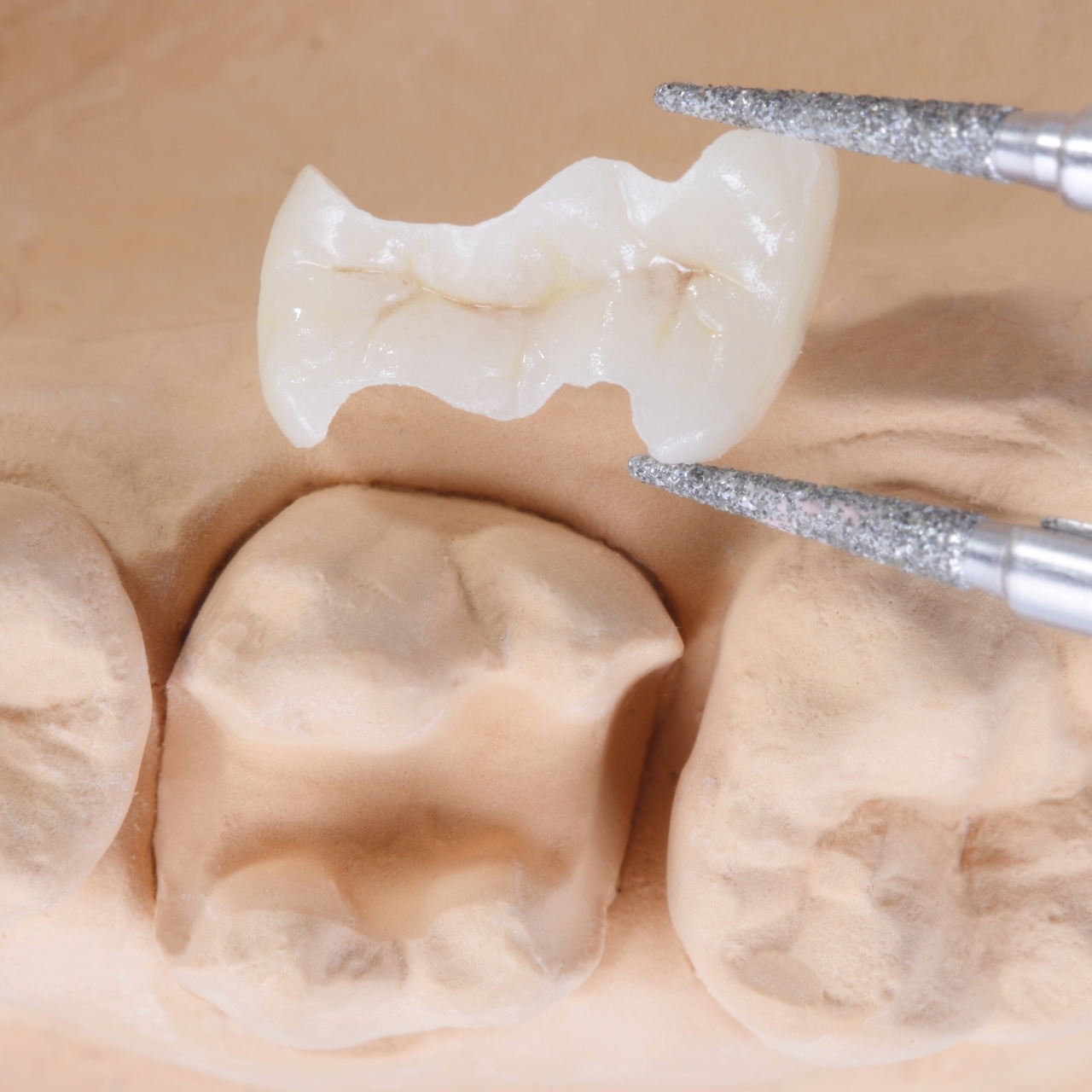 内側部分にジルコニア(酸化ジルコニウム)を使用し、上からセラミック(陶器)を焼き付けて作られた被せ物です。強度が高く、耐久性に優れているのが特徴です。